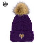 Belgian Knit Cuff Hat Faux Fur Pom Purple