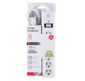 GE 6 Outlet Power Strip Surge Protector - White, 3 ft